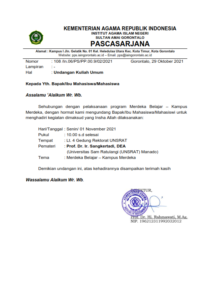 Posted on October 30, 2021August 1, 2023 by Prodi Magister PBA Undangan Kuliah Umum Tema: Merdeka Belajar – Kampus Merdeka