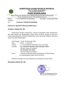 Posted on December 25, 2022July 31, 2023 by Prodi Magister PBA Undangan Training Proofreading Riset Kebahasaan dan Multi Disiplin Ilmu Menghasilkan Artikel Ilmiah SCOPUS